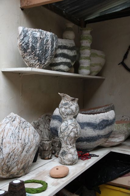 Neben den Keramik-Werkstücken stellt Robyn Filzkleidungsstücke und Silberschmuck her.