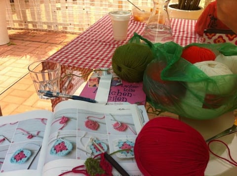 Sarah ist zu Besuch und bringt mir zum Frühstück das Häkeln bei. Nähen, stricken... kein Problem. Aber gehäkelt habe ich nur ein Mal in meinem Leben: in der Grundschule. Und das ist schon zwei, drei Tage her.