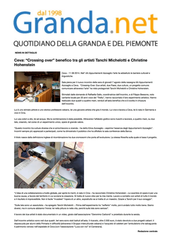 Herzlichen Dank an die Familie Azzoaglio, allen voran Erica Azzoaglio, die mein Projekt sehr unterstützt hat. Die Konferenz, die Auktion und der Empfang in ihrem wunderschönen antiken Gebäude waren ein großer Erfolg. Die Bilder wurden beide versteigert. Der gesamte Erlös kam zwei wohltätigen Zwecken zu Gute.